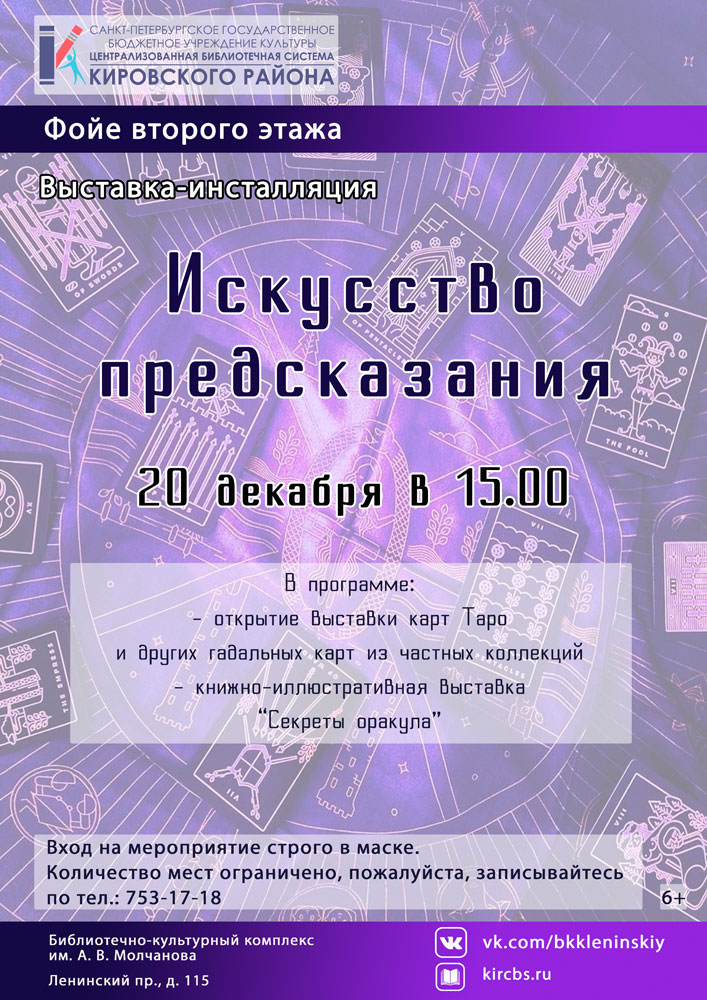 20 декабря в 15.00 в Библиотечно-культурном комплексе им. А. В. Молчанова состоится открытие Выставки-инсталляции "Искусство предсказания", в рамках проекта "Частная коллекция".
