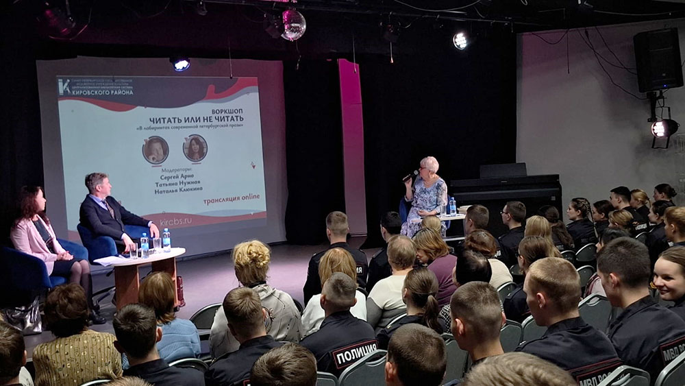 16 октября в 16.00 в Библиотечно-культурном комплексе им. А. В. Молчанова (Ленинский пр., д. 115) состоялся воркшоп "Читать или не читать" на тему "В лабиринтах современной петербургской прозы". Модераторами выступили: Сергей Арно - писатель, директор издательства Союза писателей Петербурга, директор Фонда братьев Стругацких, член Союза писателей России, Татьяна Нужная - доктор филологических наук, доцент Санкт-Петербургского государственного университета и заведующая библиографическим отделом ЦБС Кировского района Наталья Клюкина.