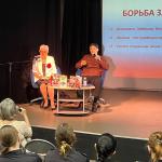 Разговор получился удивительно точным, нужным и правильным, что подтвердила и финальная часть вечера: курсанты университета МВД, присутствовавшие на воркшопе, долго не отпускали Дмитрия Орехова, задавая ему особо волнующие их вопросы.