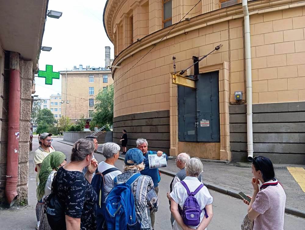 Прогулка была посвящена ряду объектов городской скульптуры, находящихся у метро "Нарвская" и была заключительной в цикле "Тайные тропы Нарвской заставы".