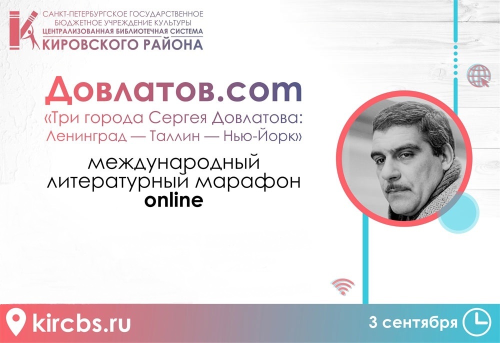 3 сентября 2021 года в ЦБС Кировского района подвели итоги III Международного литературного online марафона "Довлатов.com": "Три города Сергея Довлатова: Ленинград - Таллинн - Нью-Йорк". Он посвящен 80-летию писателя, имя которого известно практически во всех уголках планеты, крупного литератора, представителя "третьей" волны литературной эмиграции Сергея Довлатова.